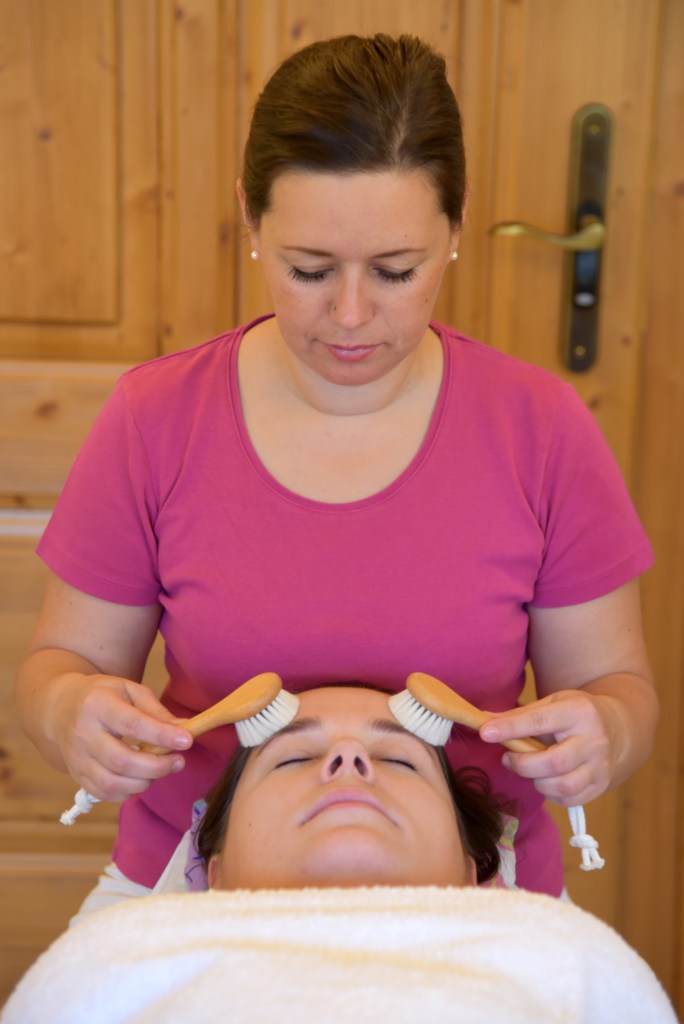 Bei der Gesichtsbürstenmassage wird mit 2 kleinen Naturhaarbürsten gleichzeitig und parallel mit leichten und rhythmischen Bewegungen über die Haut gestreift. Die Bürsten bestehen aus Ziegenhaar, welche sehr weich und geschmeidig sind. Diese Behandlung ist sehr angenehm und lässt den Körper entspannen und die Seele baumeln.